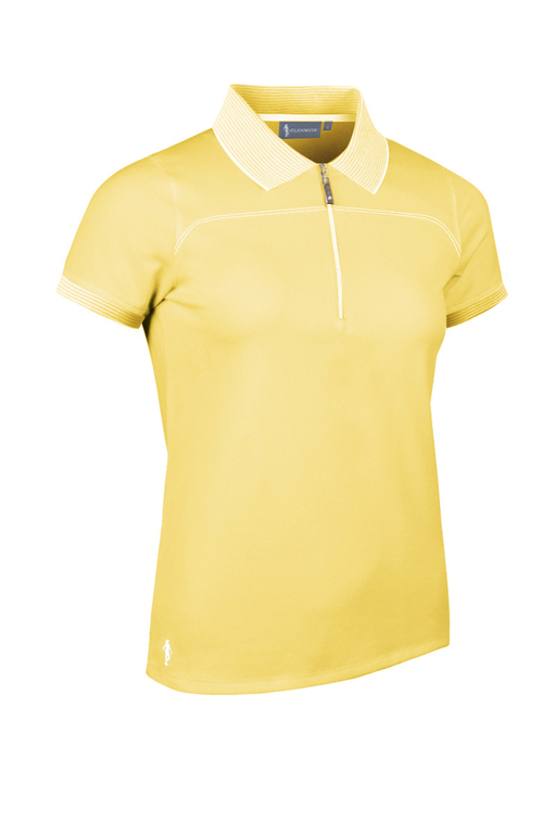 Glenmuirin laadukas pikeepaita. Hengittävä, kosteutta iholta pois siirtävä ja nopeasti kuivuva kangas. Kirjailtu Glenmuir Lady-logo kirjailtu paidan oikeassa alakulmassa.